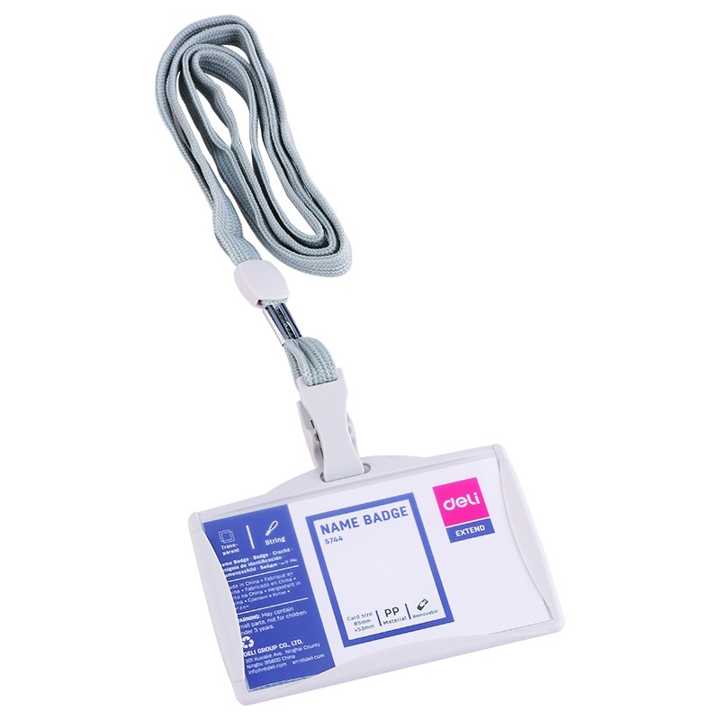 Ecuson standard, orizontal, 85x53mm, rigid, clips si snur textil, 5744 Deli