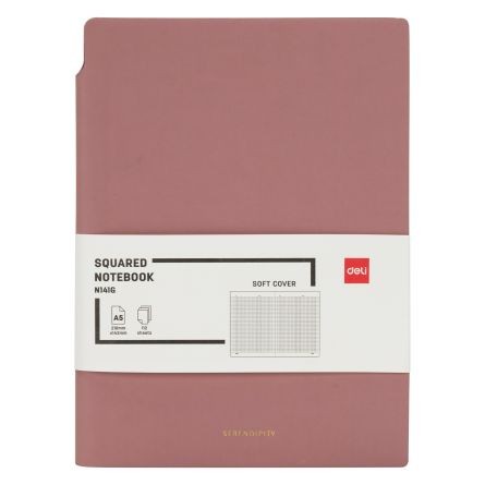 Caiet A5, 112file, matematica, coperta imitatie piele piersica, Deli DLEN141GB