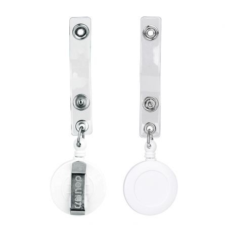 Snur retractabil, cutie rotunda alba, 12buc/set, pentru ecusoane, Deli DL8309