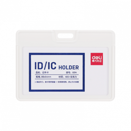 Ecuson plastic rigid pentru carduri, orizontal, 89x54mm, alb, Deli DL8314