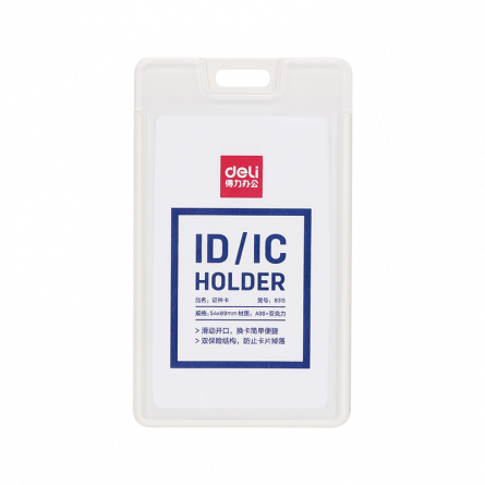 Ecuson plastic rigid pentru carduri, vertical, 54x89mm, alb, Deli DL8315