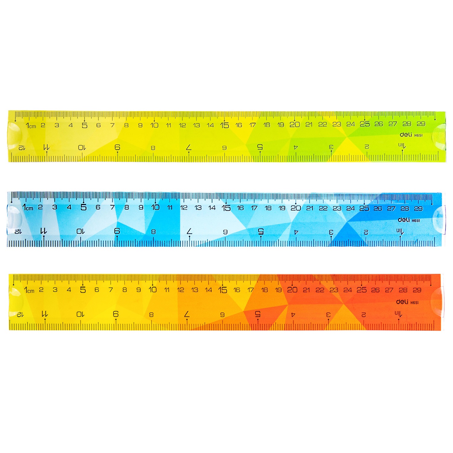 Rigla plastic transparent color, flexibila, 30cm Deli