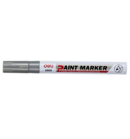 Permanent marker cu vopsea acrilica, argintiu, varf 2,0 mm, U500 Deli