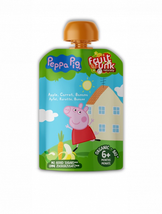 Piure din fructe cu banane Peppa Pig, 90g, Fruit Funk