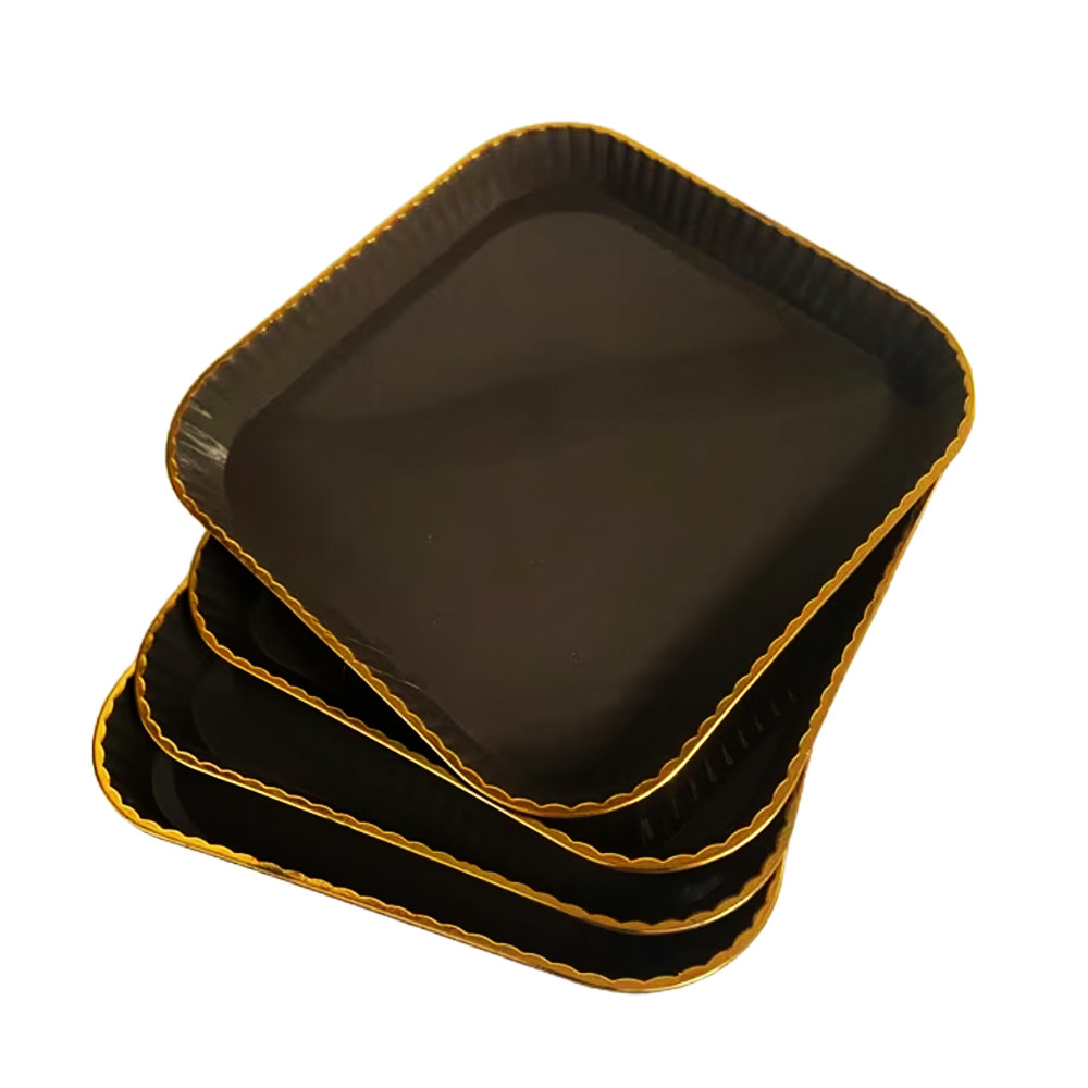 Farfurie eleganta mare din plastic Pufo Gentle Gold pentru desert, aperitive, 31 cm