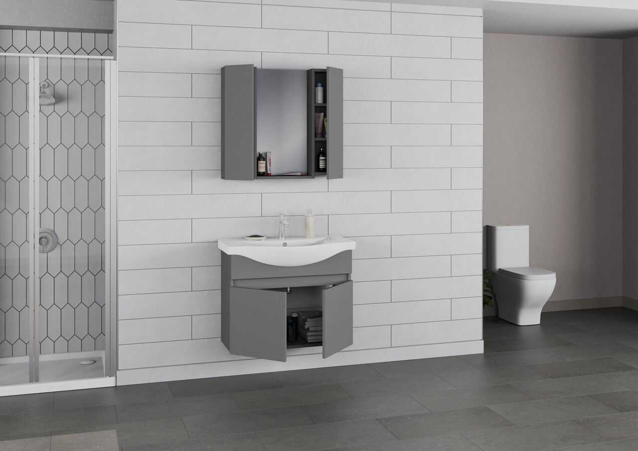 Set mobilier de baie (2 piese), Hanah Home, Amore 80, Gri Mat