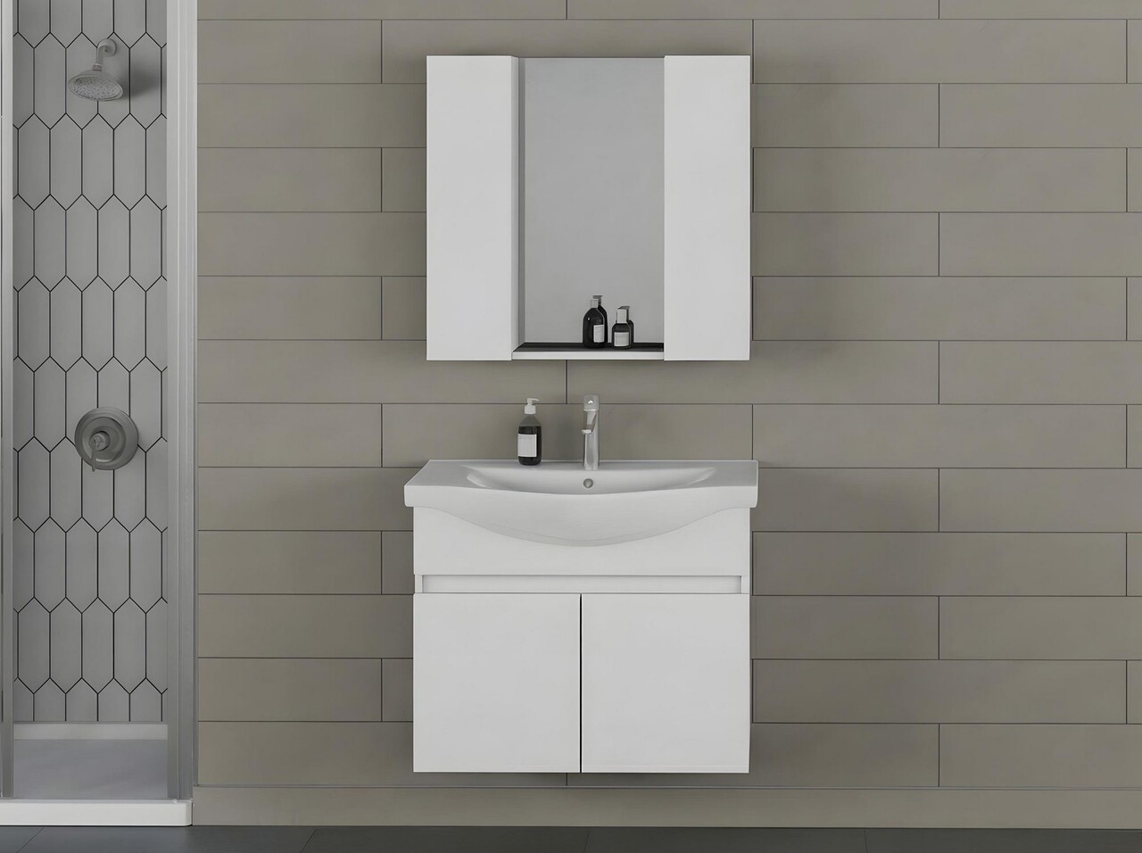 Set mobilier de baie (2 piese), Hanah Home, Bellezza 80, Alb mat