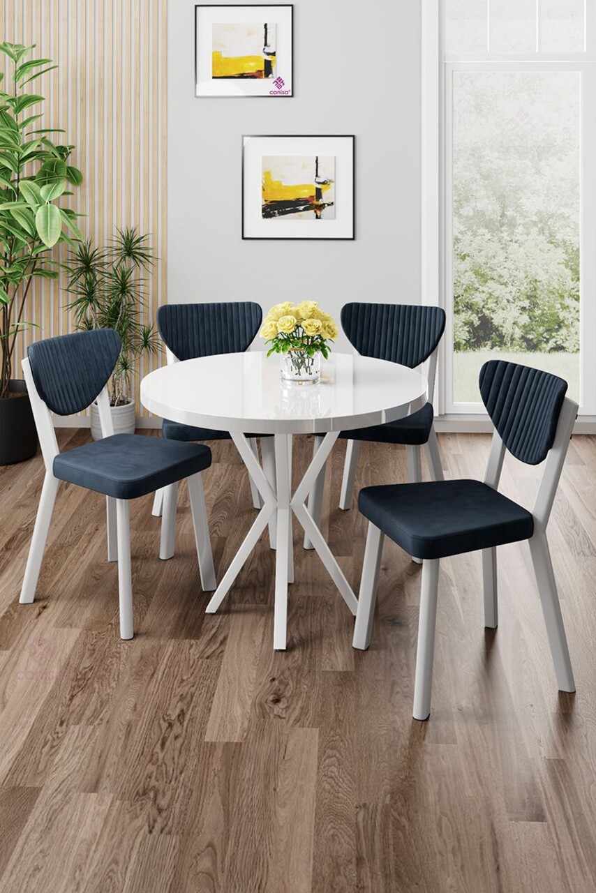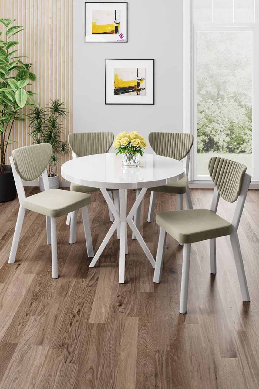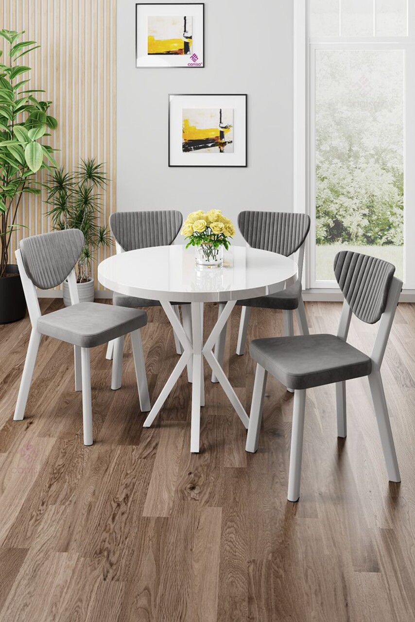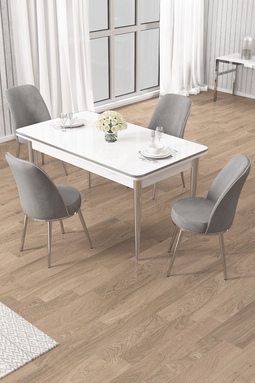 Set masă și scaune (5 bucăți), Hanah Home, Rewa, Alb / Crom / Gri