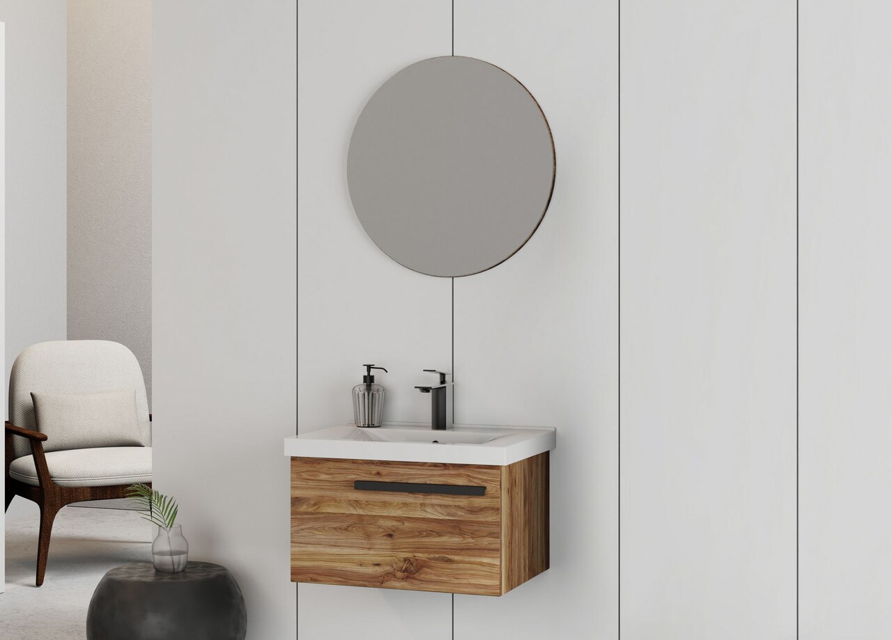 Set mobilier de baie (2 piese), Hanah Home, Carıno 80, Pin / Latte