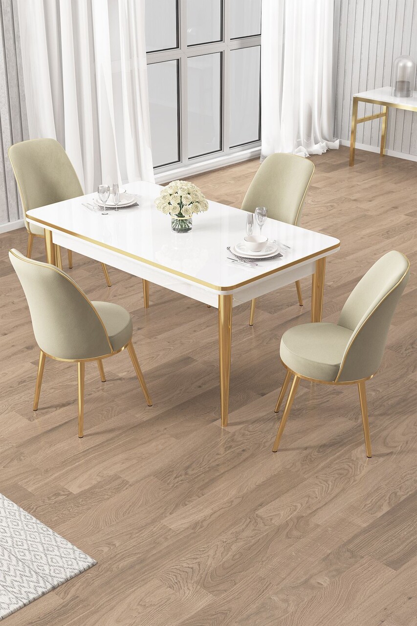 Set masă și scaune (5 bucăți), Hanah Home, Rewa, Alb / Auriu / Cappuccino