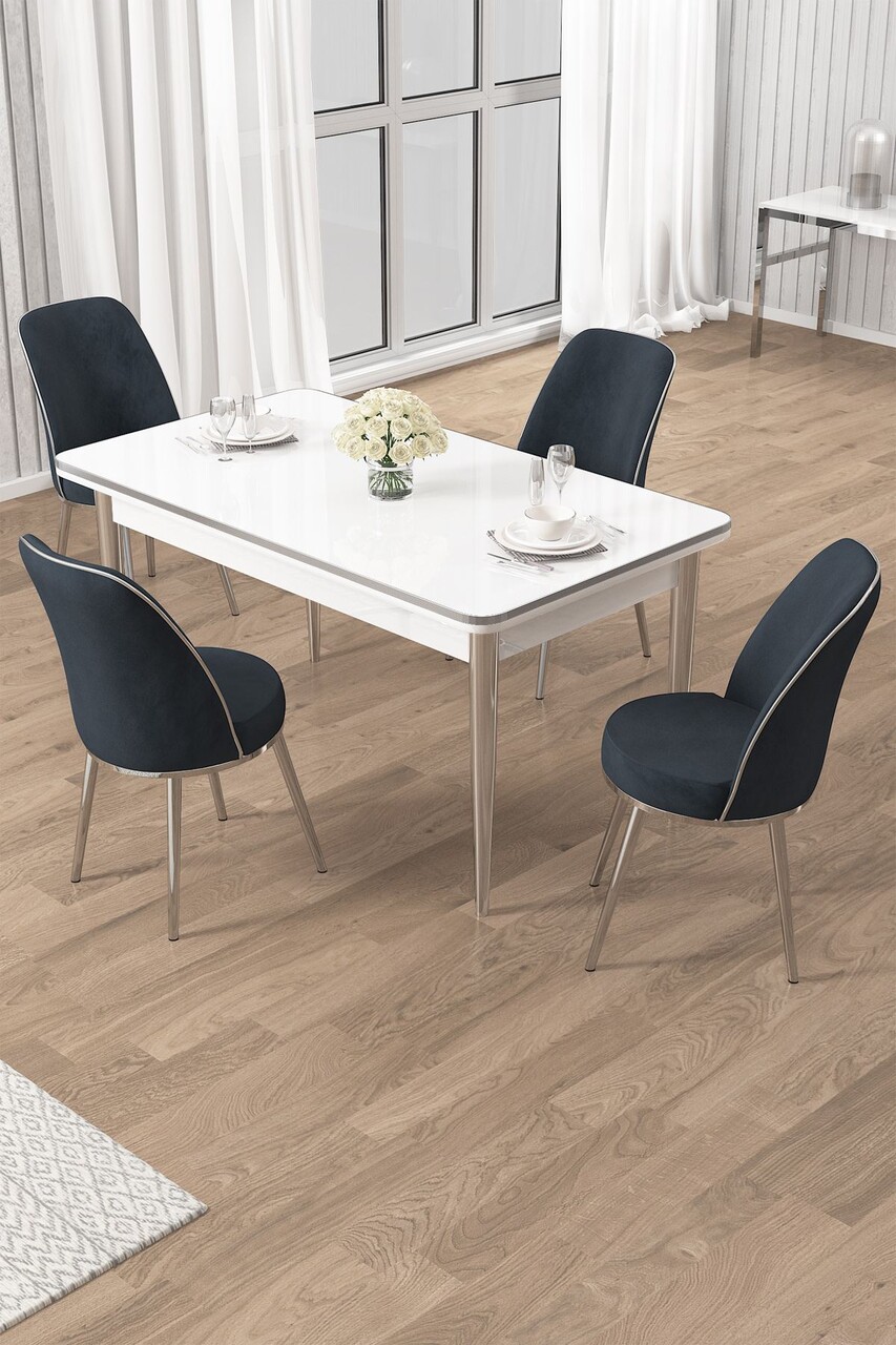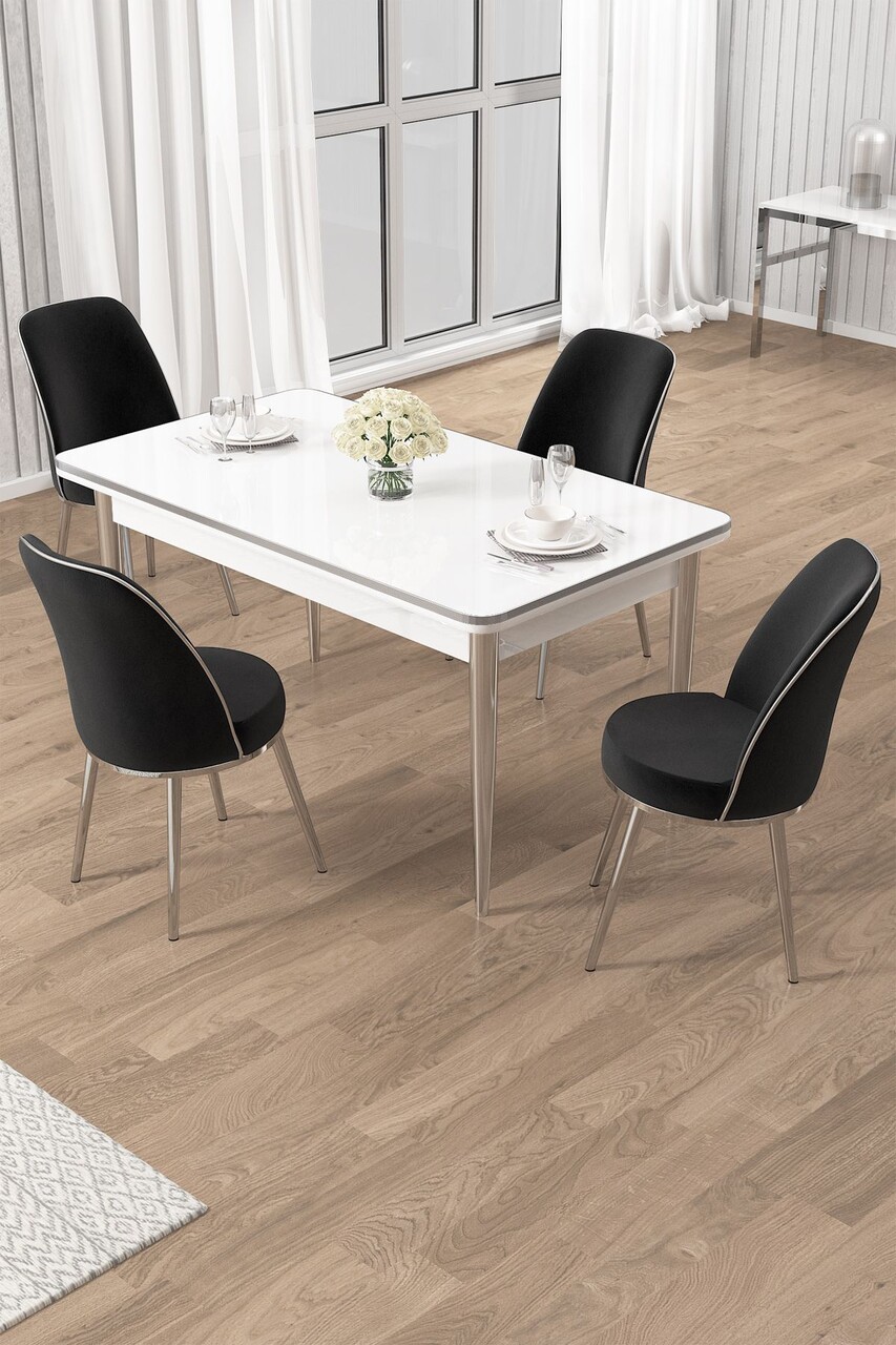 Set masă și scaune (5 bucăți), Hanah Home, Rewa, Alb / Crom / Negru