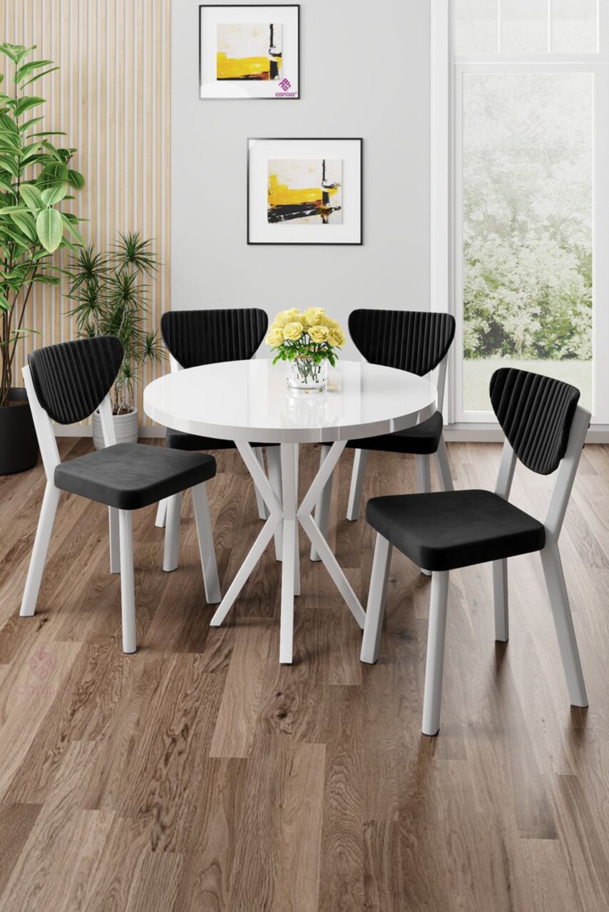 Set masă și scaune (5 bucăți), Hanah Home, Agnes, Alb/Negru