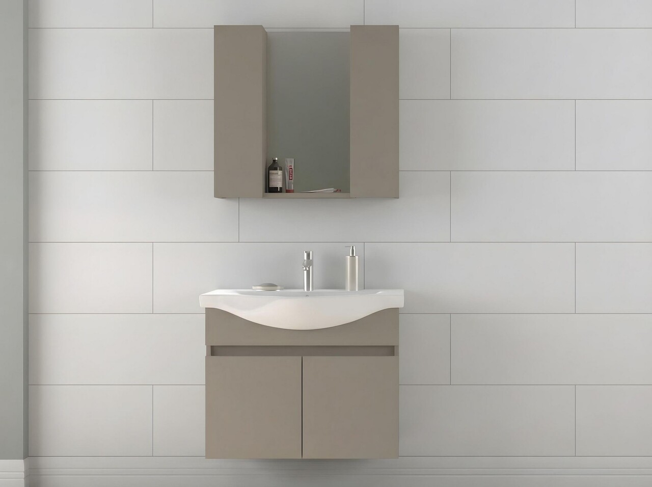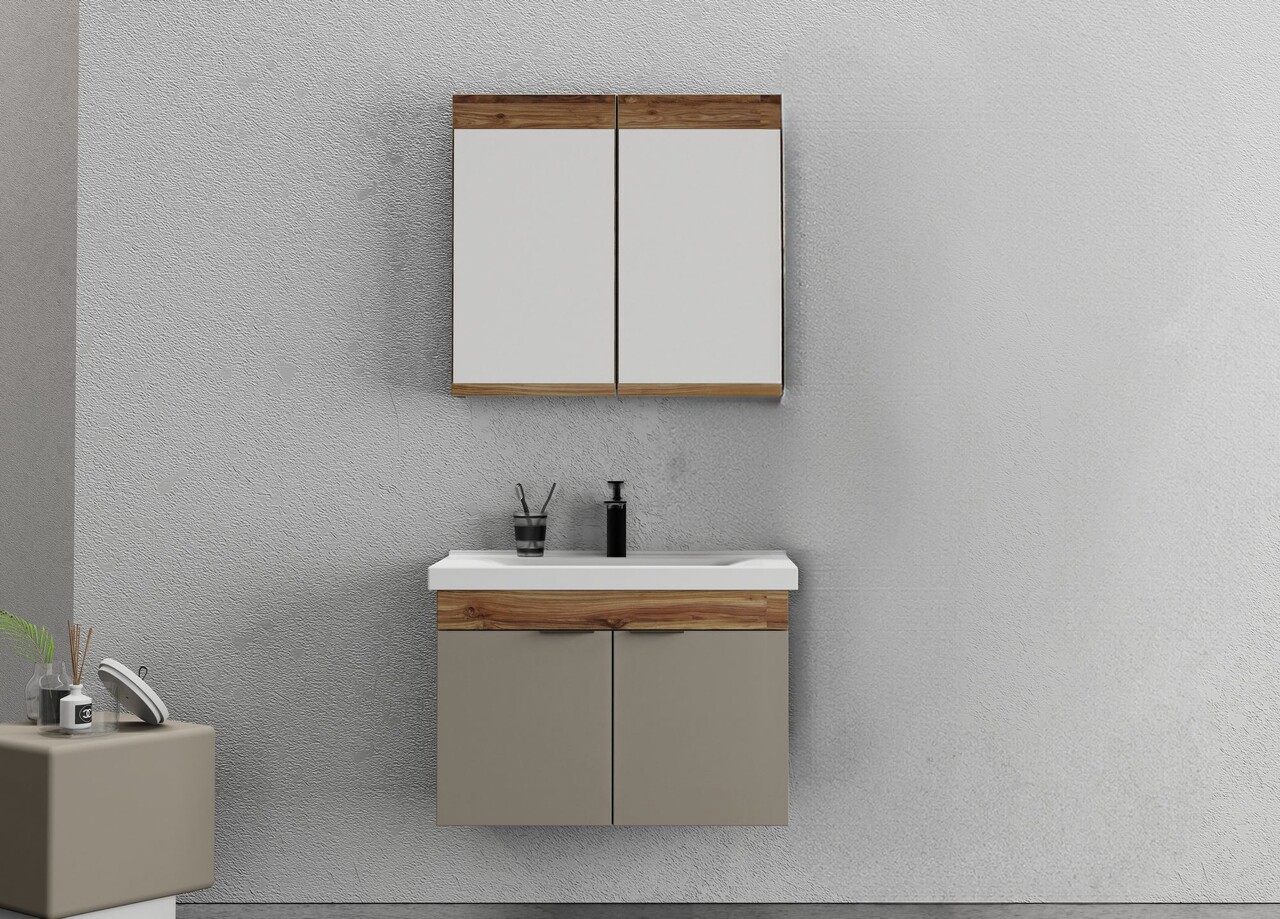 Set mobilier de baie (2 piese), Hanah Home, Amore 80, Latte