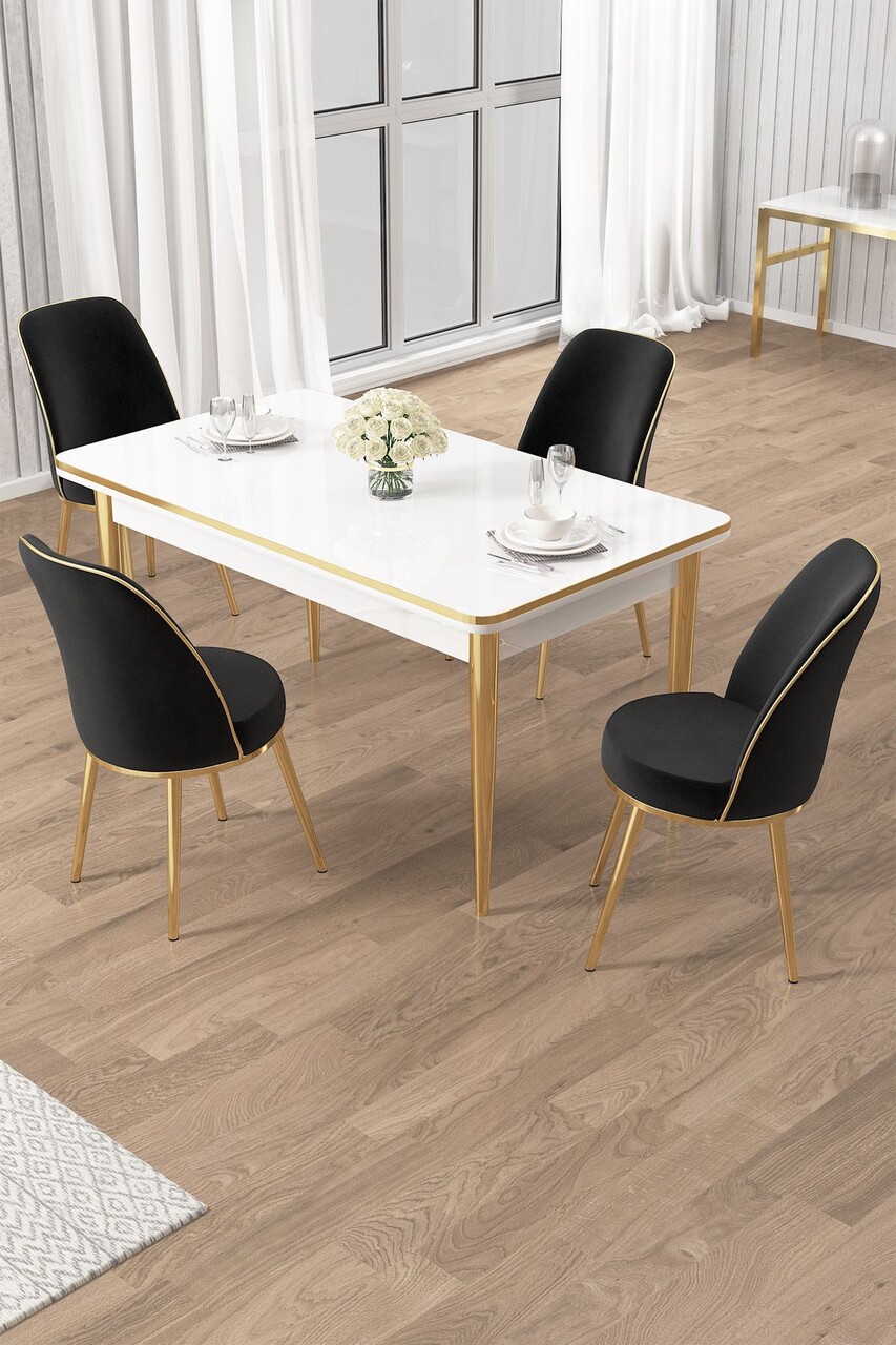 Set masă și scaune (5 bucăți), Hanah Home, Rewa, Alb / Auriu / Negru