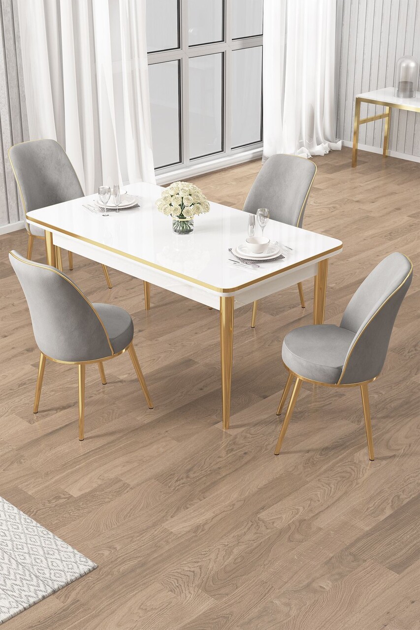 Set masă și scaune (5 bucăți), Hanah Home, Rewa, Alb / Auriu / Gri