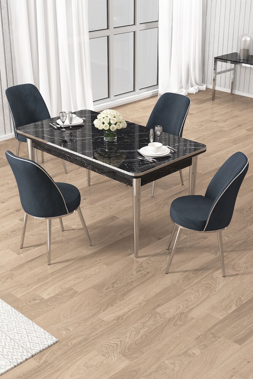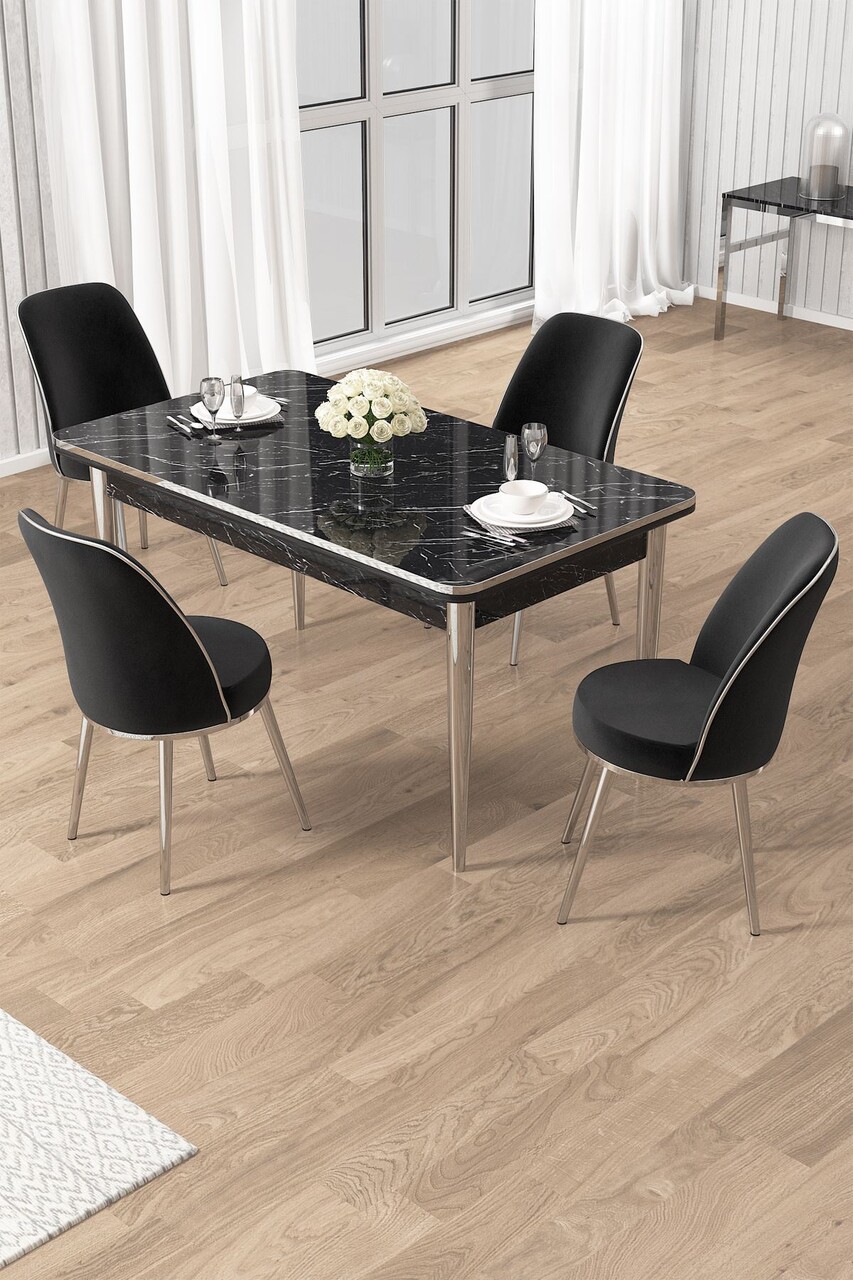 Set masă și scaune (5 bucăți), Hanah Home, Rewa, Marmură neagră / Crom / Negru