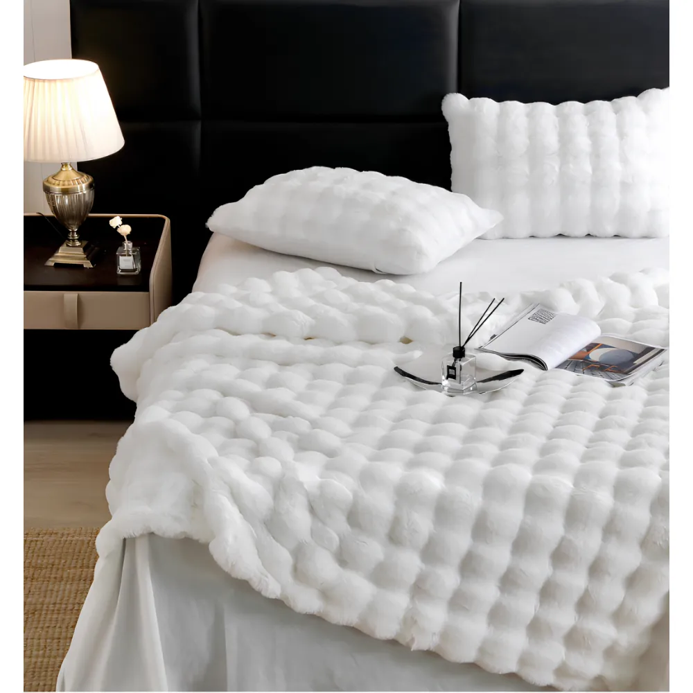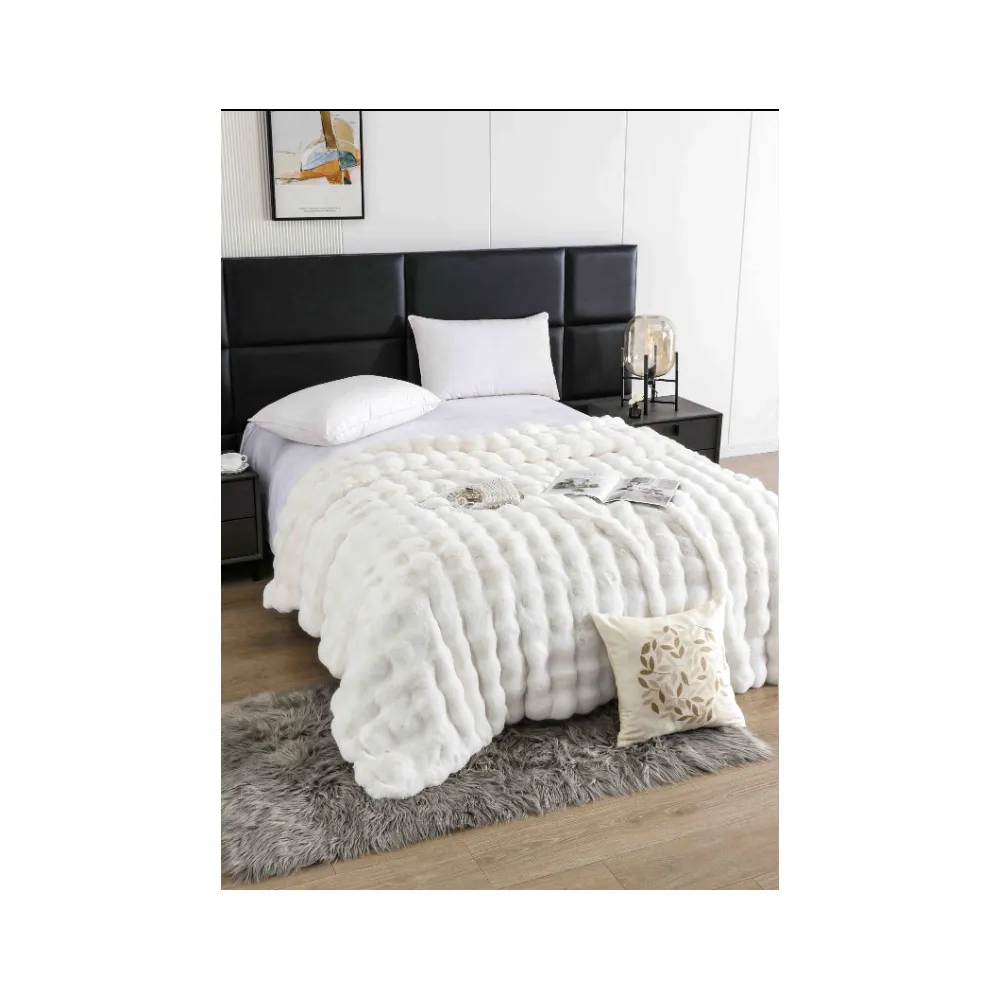 Patura Cocolino cu Blanita Artificiala de Iepure pentru Pat Dublu, Alb - JOJ613