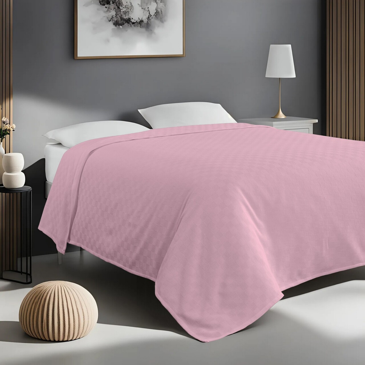 Cuvertura matlasata dubla (EU) (IT), Lessentiel Maison, Plain, Roz