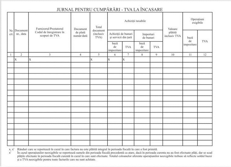 Jurnal pentru cumparari cu TVA la incasare, A4