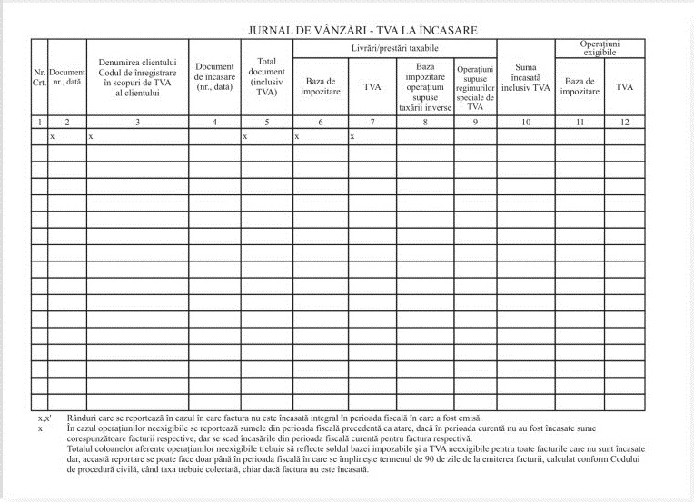 Jurnal pentru vanzari cu TVA la incasare, A4