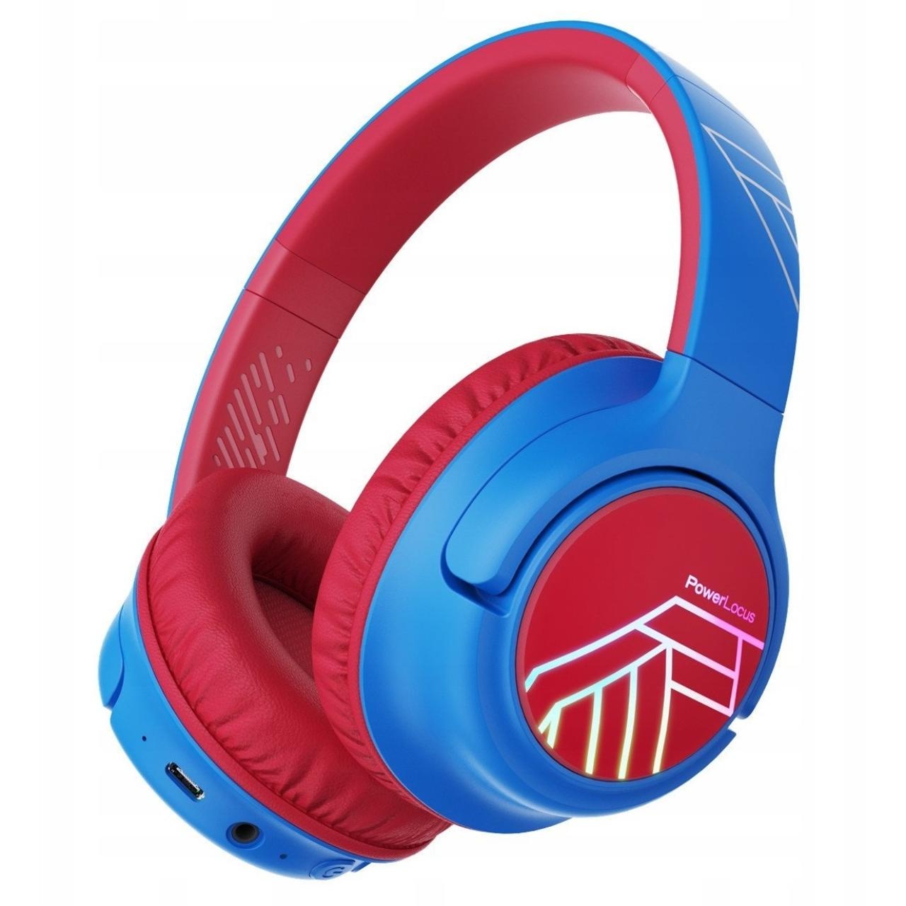 Casti pentru copii on-ear cu microfon, fara fir, Bobo Kids Blue/Red, PowerLocus