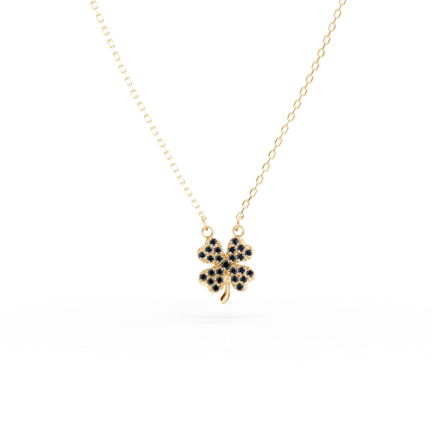 Lant cu pandantiv trifoi din aur galben cu zirconii negre