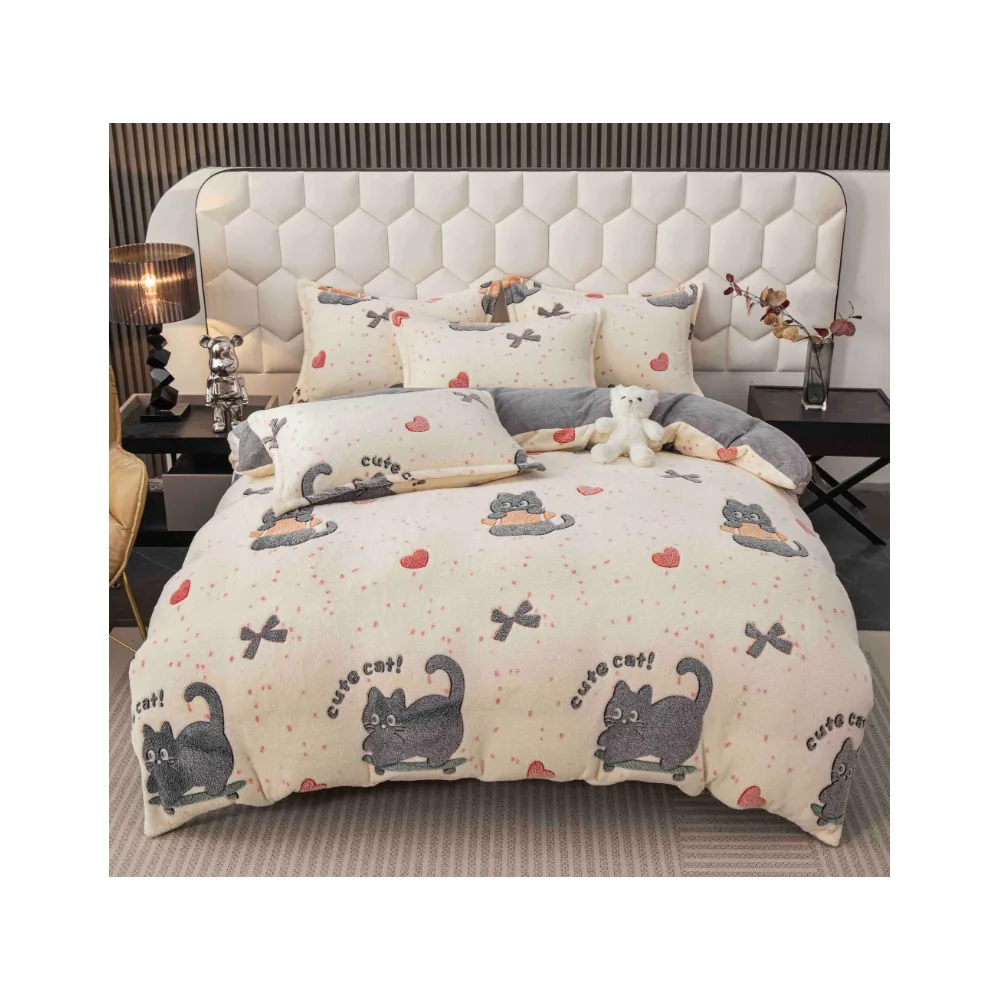 Lenjerie Cocolino 4 Piese Pentru Pat Dublu cu Elastic- JOJ814 Pisica Crem