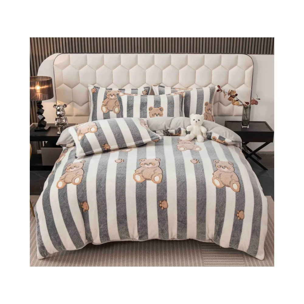 Lenjerie Cocolino 4 Piese Pentru Pat Dublu cu Elastic- JOJ813 Urs Gri