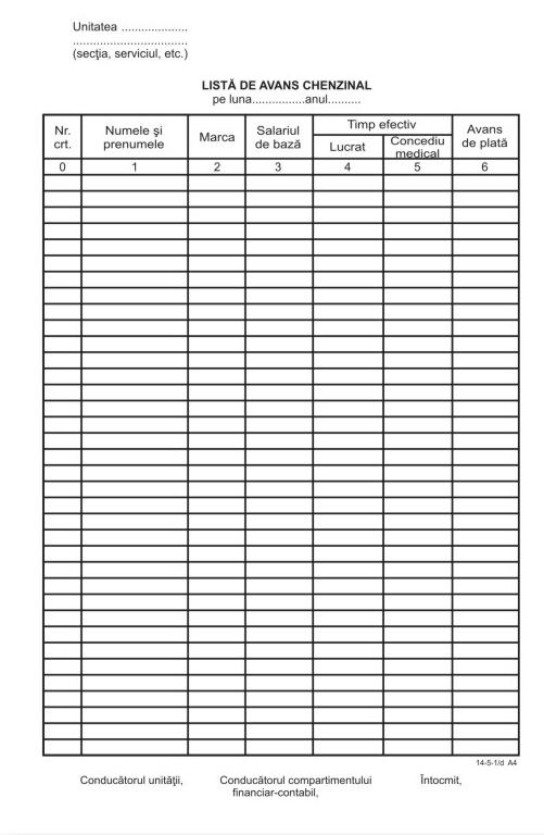 Lista avans chenzinal A4