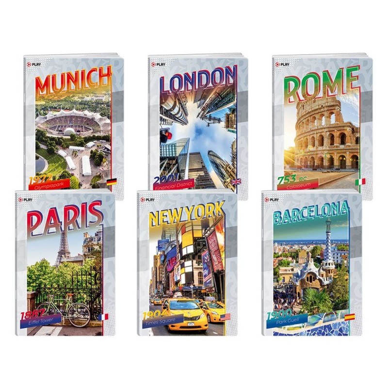 Caiet A4, 60file, dictando, City By Day (Paris, Roma, Barcelona, Londra, New York, Munich)