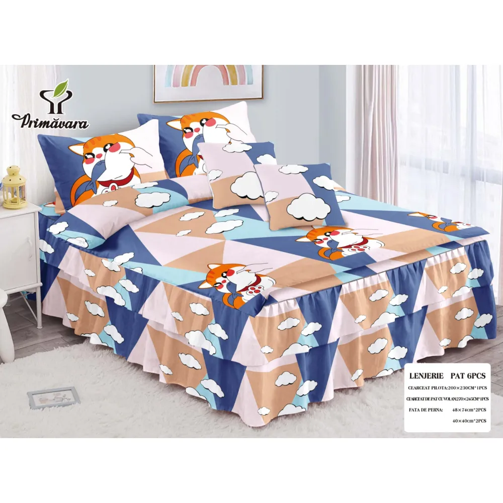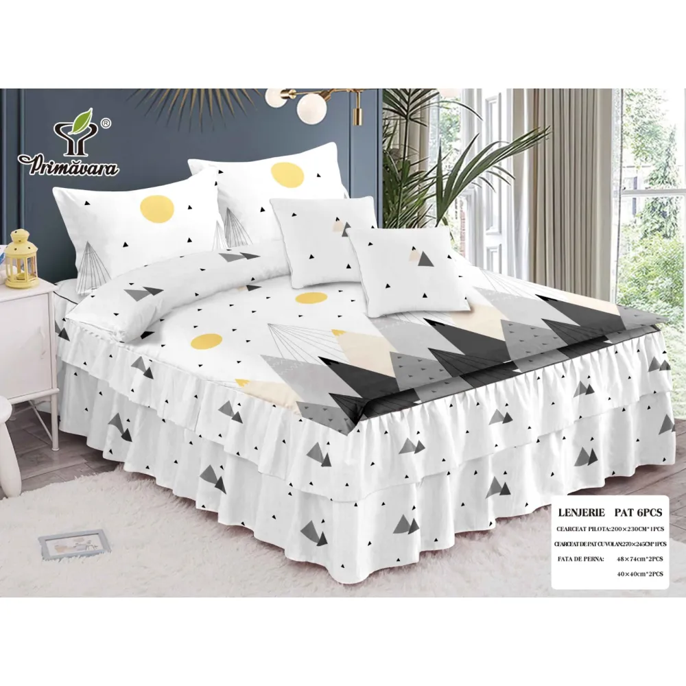 Lenjerie de Lux cu Volanase pentru pat dublu din Bumbac FINET-LJ842