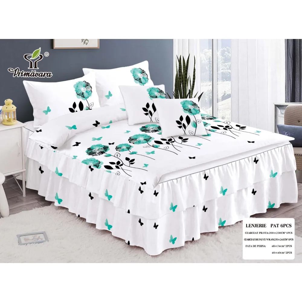 Lenjerie de Lux cu Volanase pentru pat dublu din Bumbac FINET Gros - CPL274