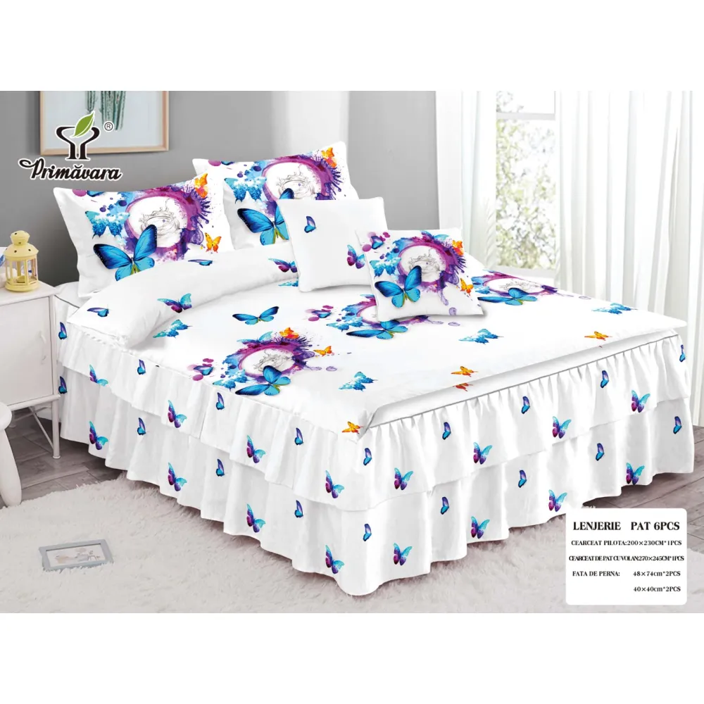 Lenjerie de Lux cu Volanase pentru pat dublu din Bumbac FINET Gros - CPL276