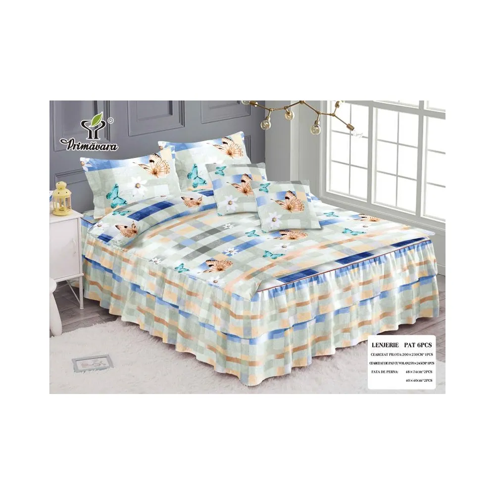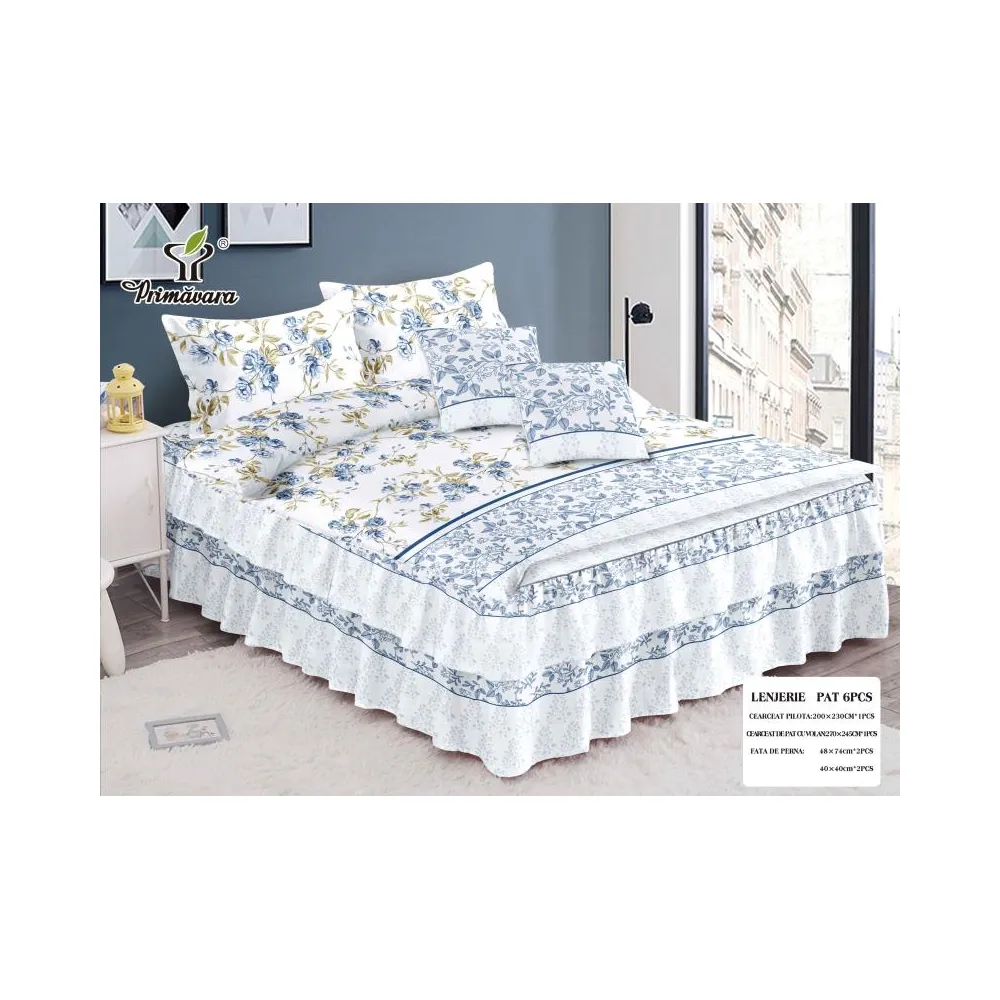 Lenjerie de lux 6 piese pentru pat dublu - bumbac finet - CPL22