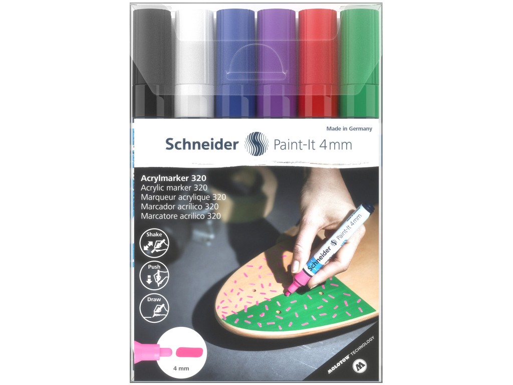 Permanent marker 6buc/set (albastru, negru, rosu, verde, maro, portocaliu), varf tesit 1,0-2,5mm, Lu