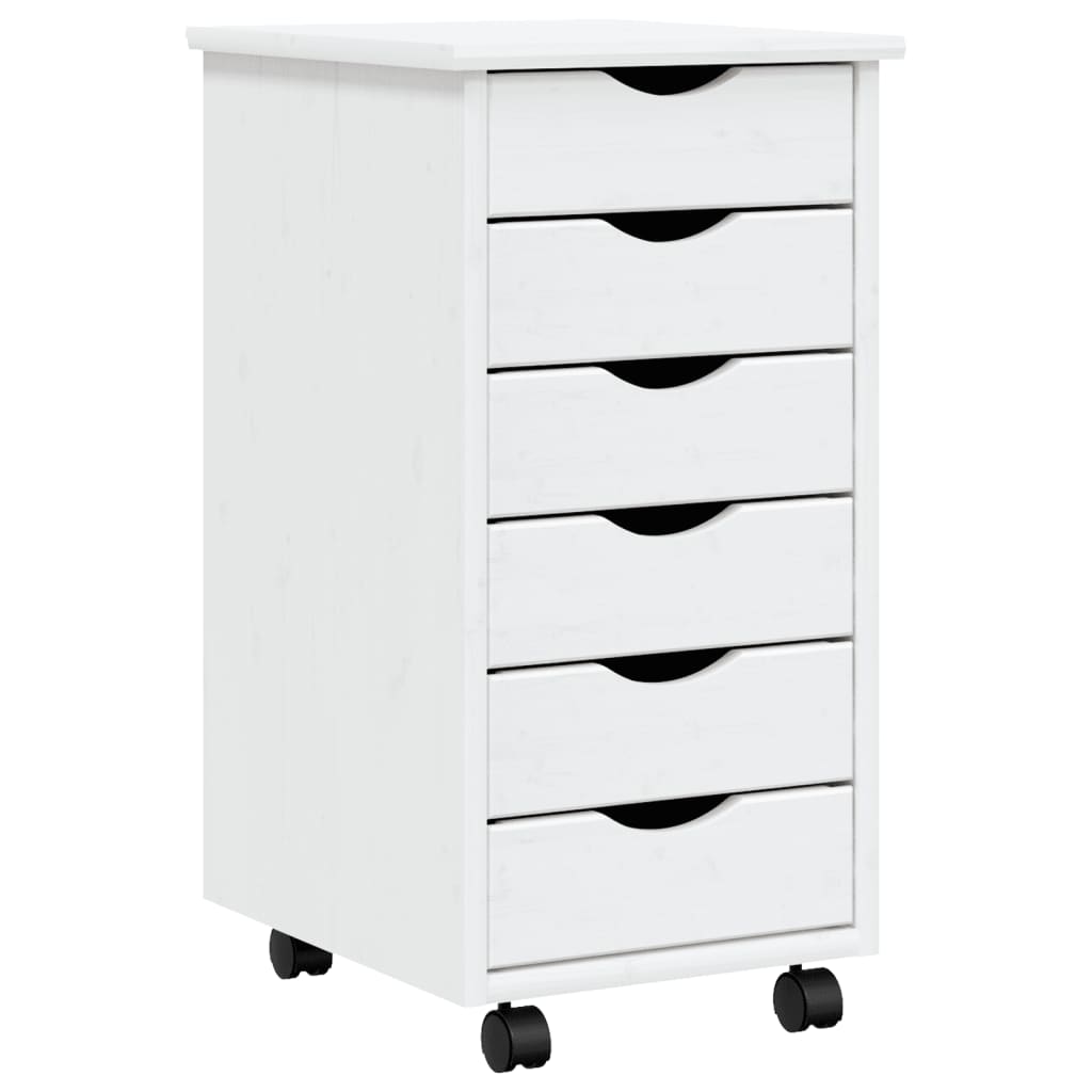 Dulap rulant cu sertare MOSS, alb, lemn masiv de pin