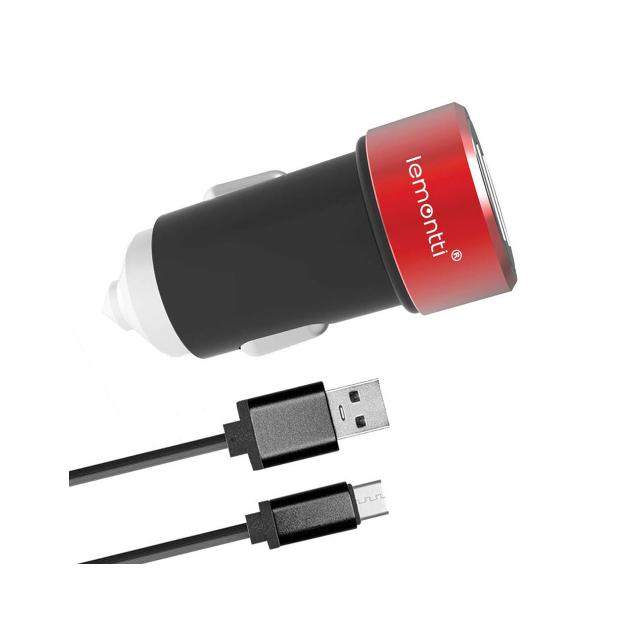 Incarcator auto, 2xUSB, fast charge, 3.1A si cablu microUSB inclus, 1m, negru/rosu, Lemontti
