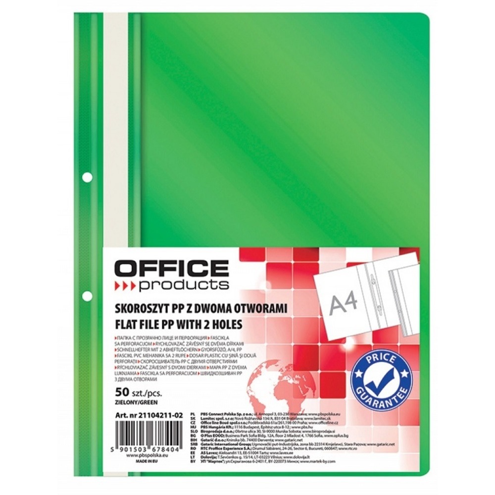 Dosar plastic cu sina si perforatii, verde deschis, 50buc/set, Office Products