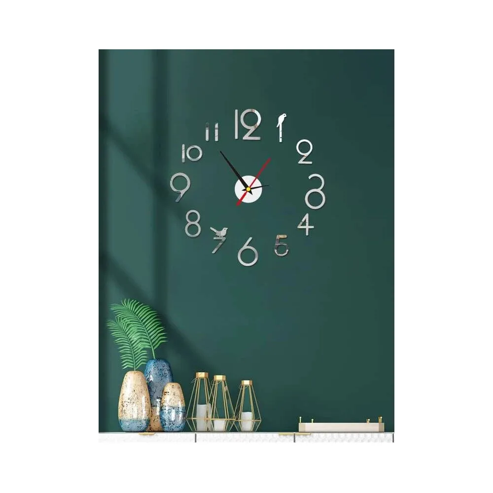 Ceas de perete 3D - Oglinda Argintiu 35x35 cm