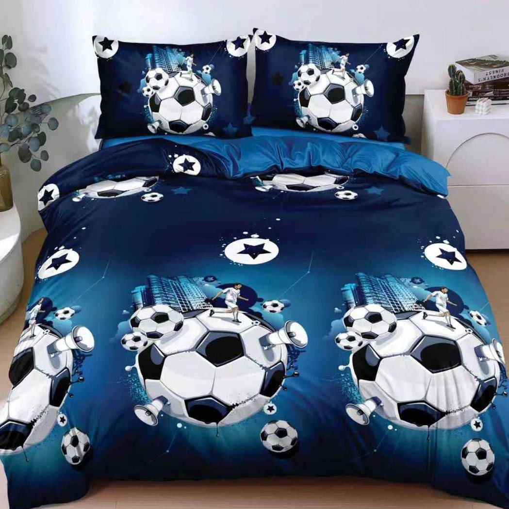 Lenjerie pat dublu cu Elastic, bumbac satinat, Albastru, mingii de fotbal