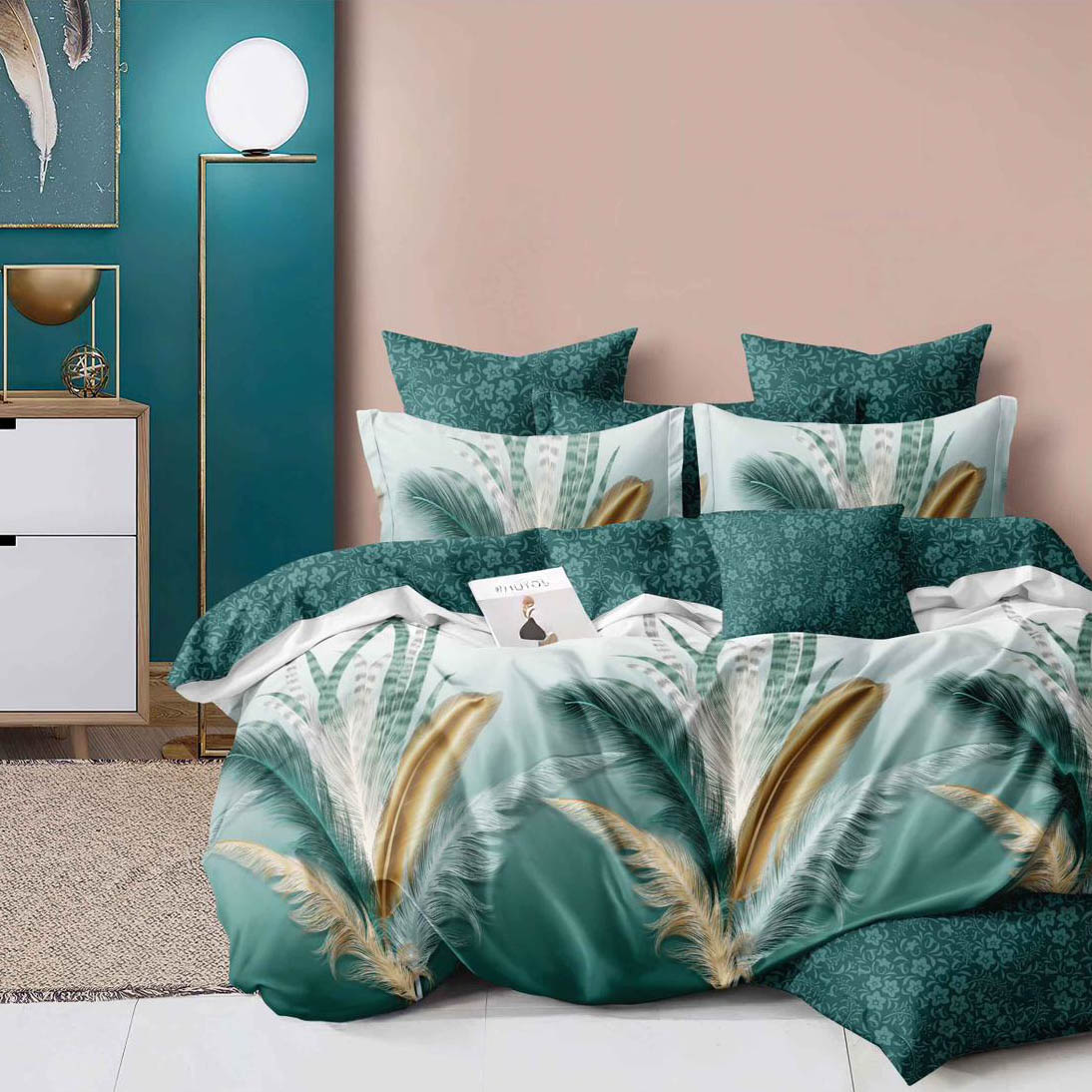Lenjerie pat dublu, Finet, 6 piese, Verde, pene