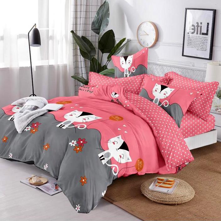 Lenjerie pat dublu cu ELASTIC, Finet, 6 piese, Roz, pisici
