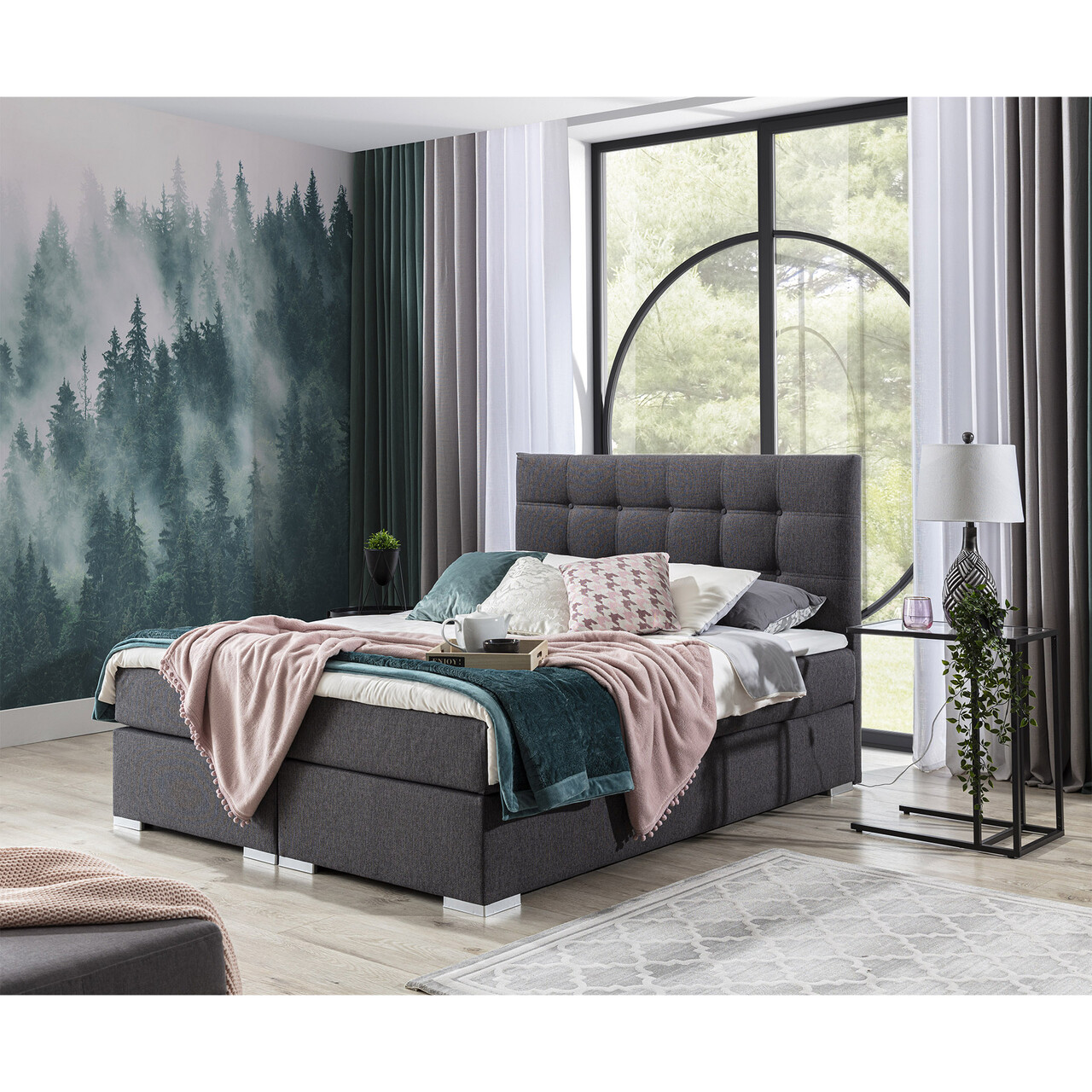 Pat boxspring tapitat, 140x200 cm, ELTAP, 09-1.4, Inez, lemn/poliester, gri inchis