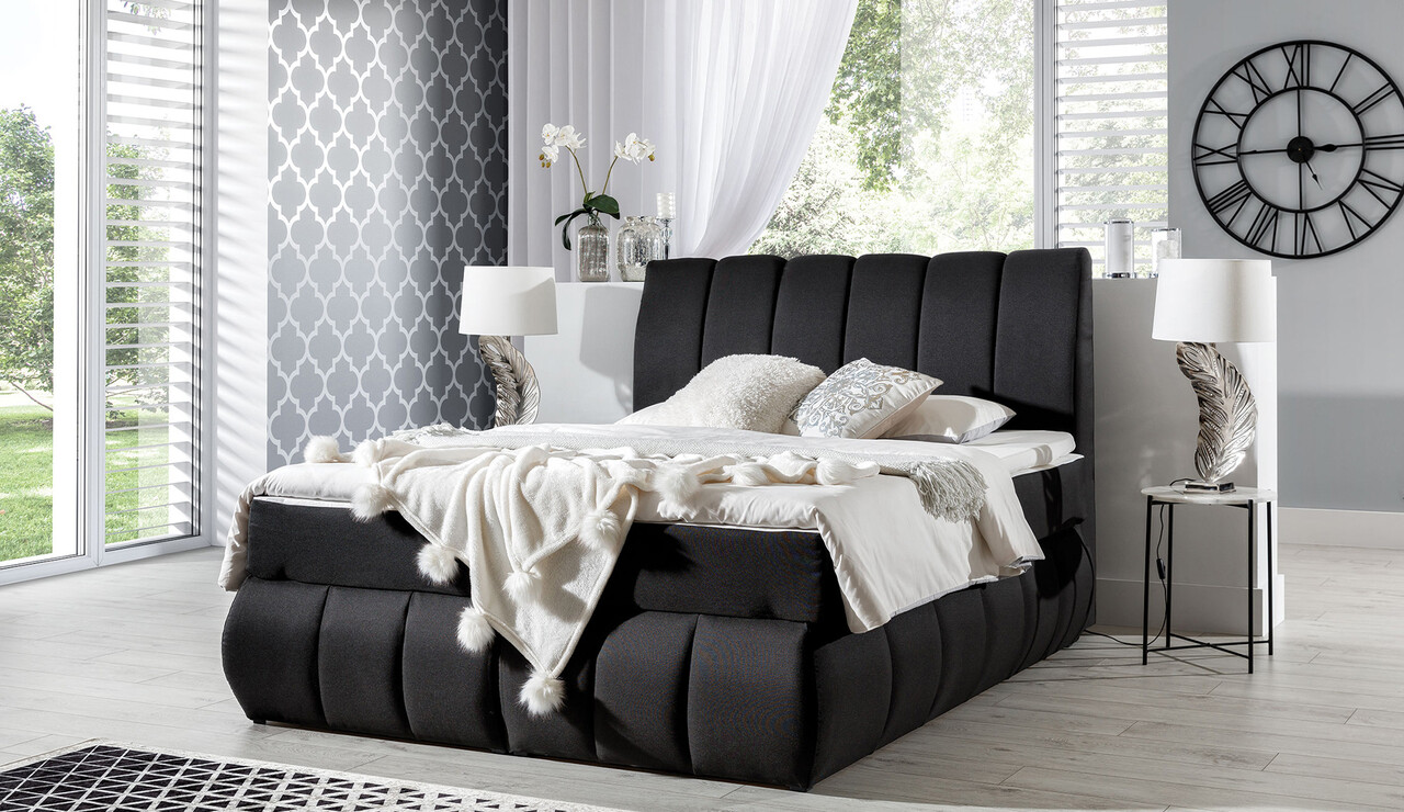 Pat boxspring tapitat, 140x200 cm, ELTAP, 04-1.4, Inez, lemn/poliester, negru