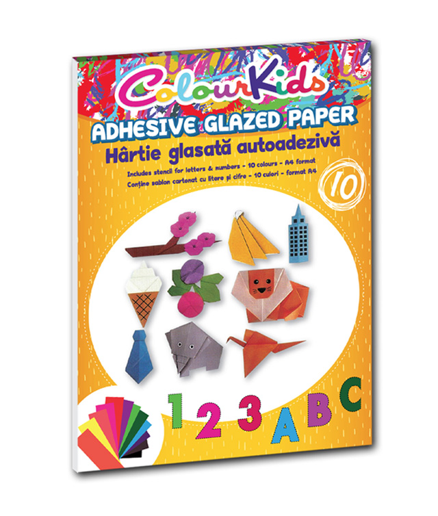 Hartie glasata autocolanta A4, 10culori/set, Colour Kids Pigna