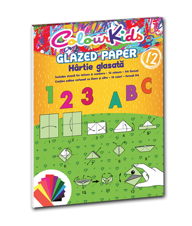 Hartie glasata lucioasa A4, 12culori/set, Colour Kids Pigna