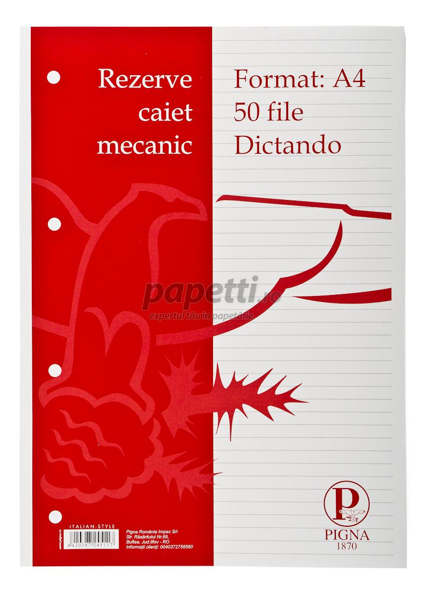 Rezerve ptr.caiet mecanic A4, 50 file/set, dictando Pigna