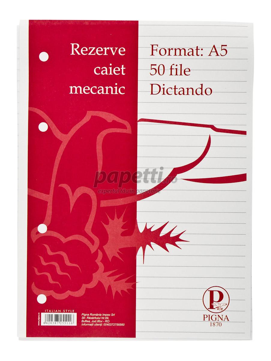 Rezerve ptr.caiet mecanic A5, 50 file/set, dictando Pigna