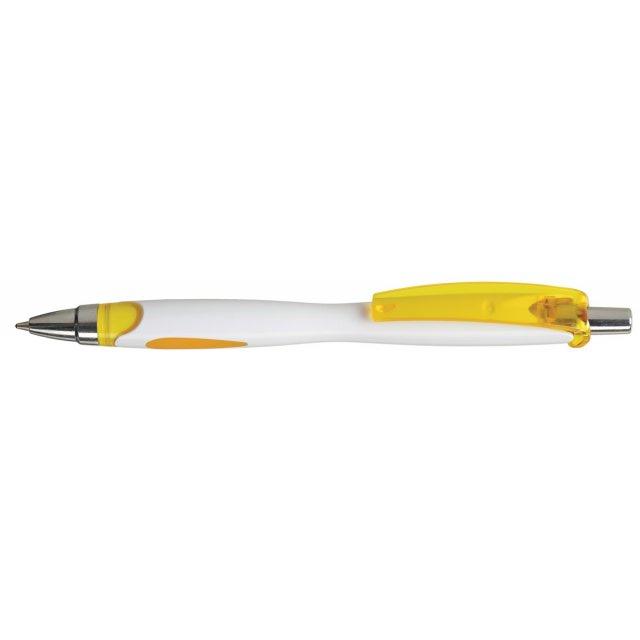 Pix retractabil ptr. promo, albastru, corp alb/galben, varf 0,7mm, Viva Viki White