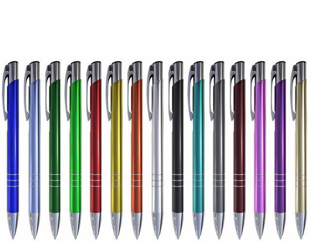 Pix retractabil metalic ptr. promo, albastru, corp verde, varf 0,7mm, Prestige Kalipso